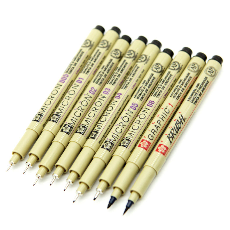日本樱花针管笔套装绘图笔学生用手绘防水勾线笔黑色设计美术专用描边笔描线草图正品绘画勾边樱花牌笔05文具