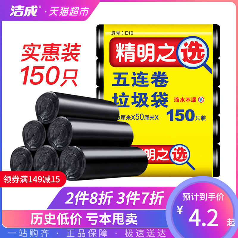 洁成一次性垃圾袋150只家用中号塑料袋加厚黑绿色实惠分类垃圾袋