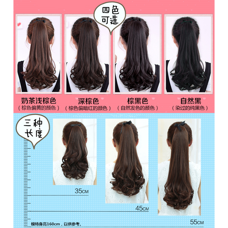 佰美坊假发女长卷发绑带式梨花假马尾大波浪逼真中长款短款假发片