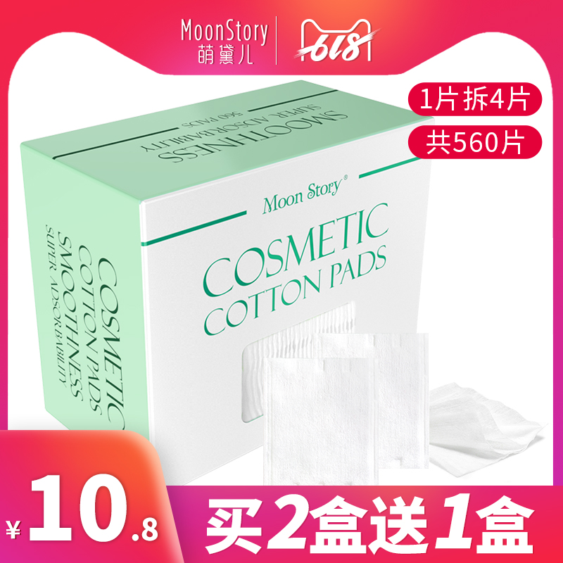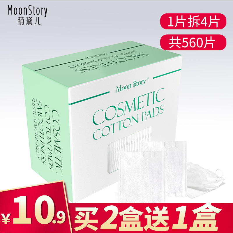 萌黛儿化妆棉560片盒装薄纯棉 脸部湿敷补水洁面工具厚款卸妆棉