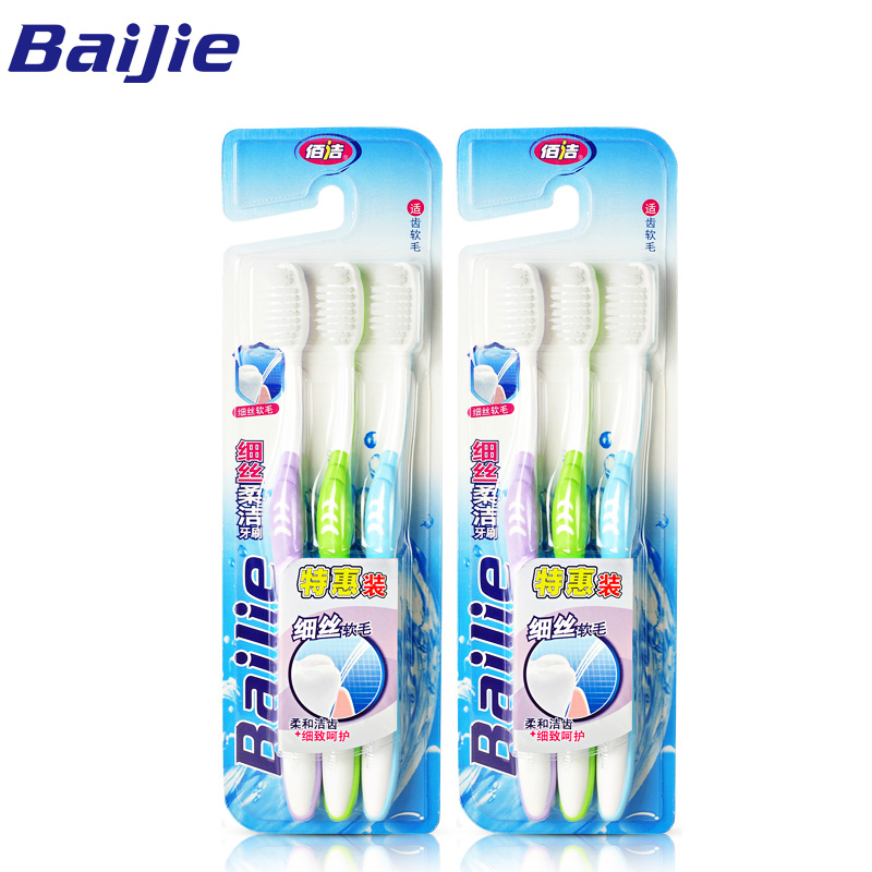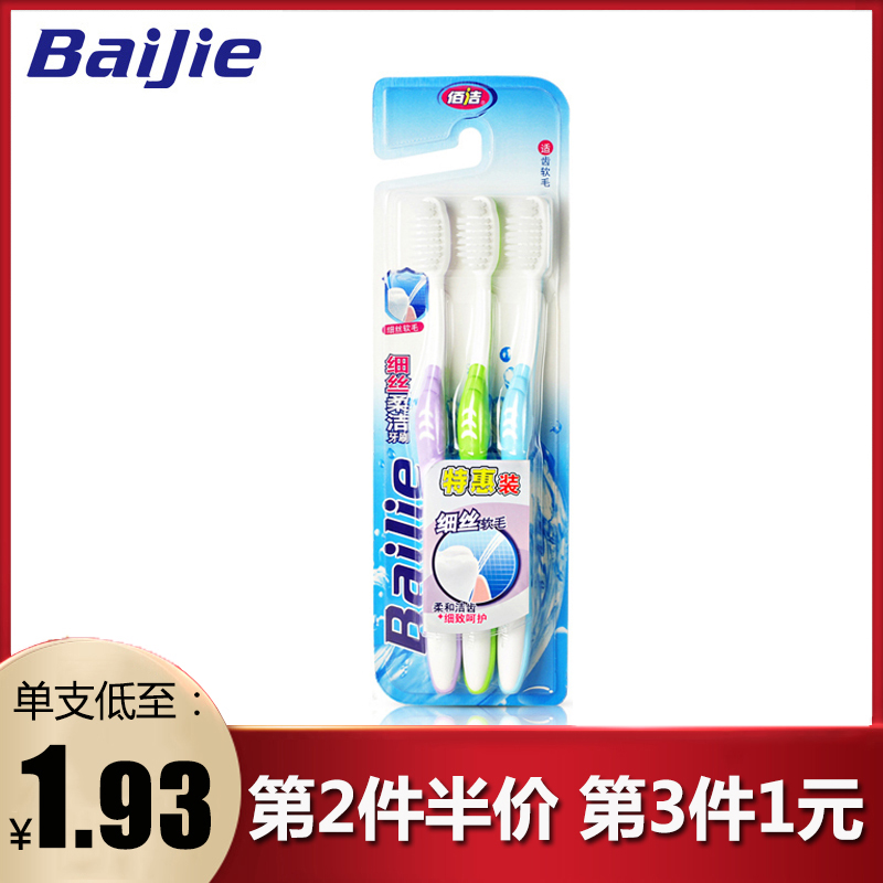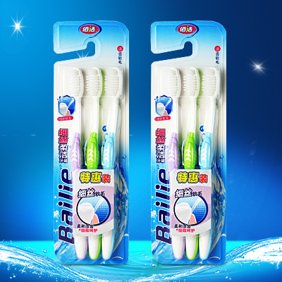 佰洁牙刷磨尖细丝柔软软毛牙刷小刷头成人细毛牙刷3支家庭旅行装