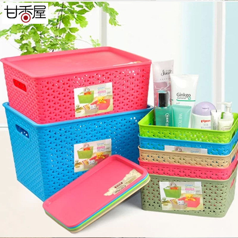 桌面内衣收纳盒有盖塑料收纳箱衣娄 整理箱储物箱脏衣服编织筐