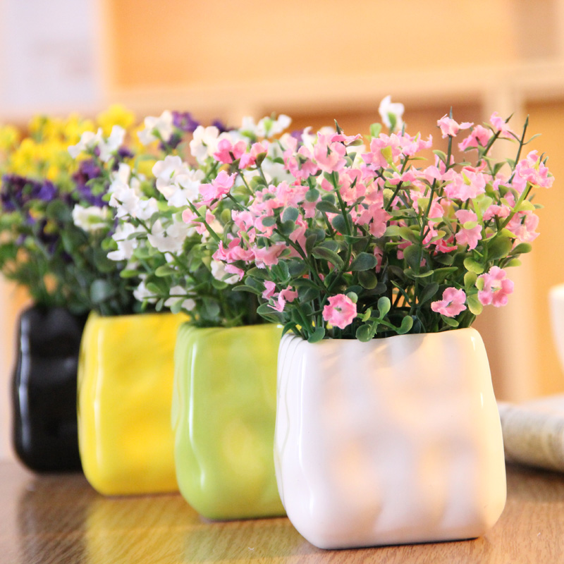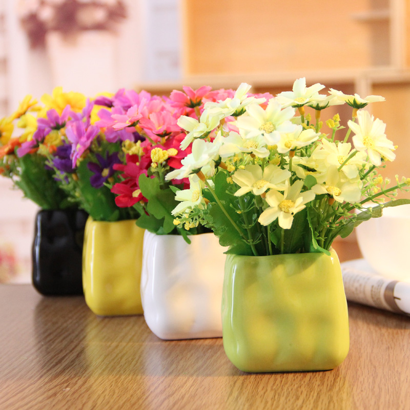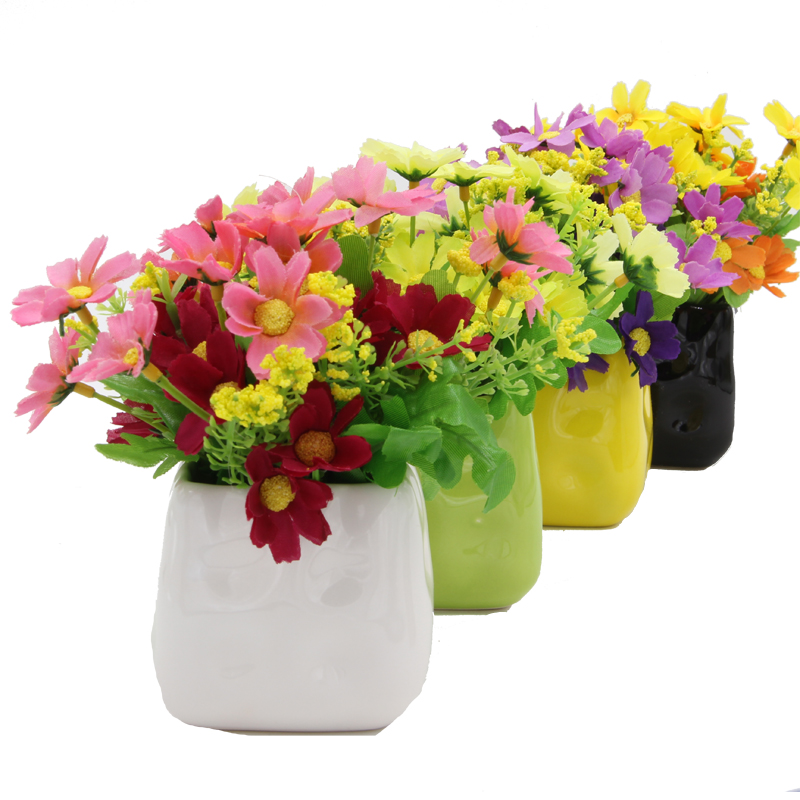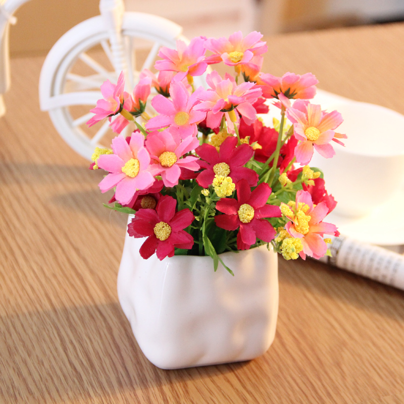 雏菊满天星绢花假花塑料仿真花客厅隔板装饰花艺套装 田园小盆栽