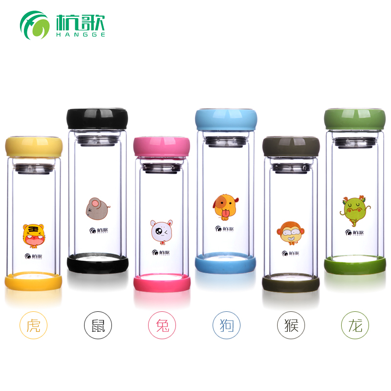 杭歌可爱时尚女生玻璃杯双层带盖创意情侣水杯子隔热过滤茶杯ins