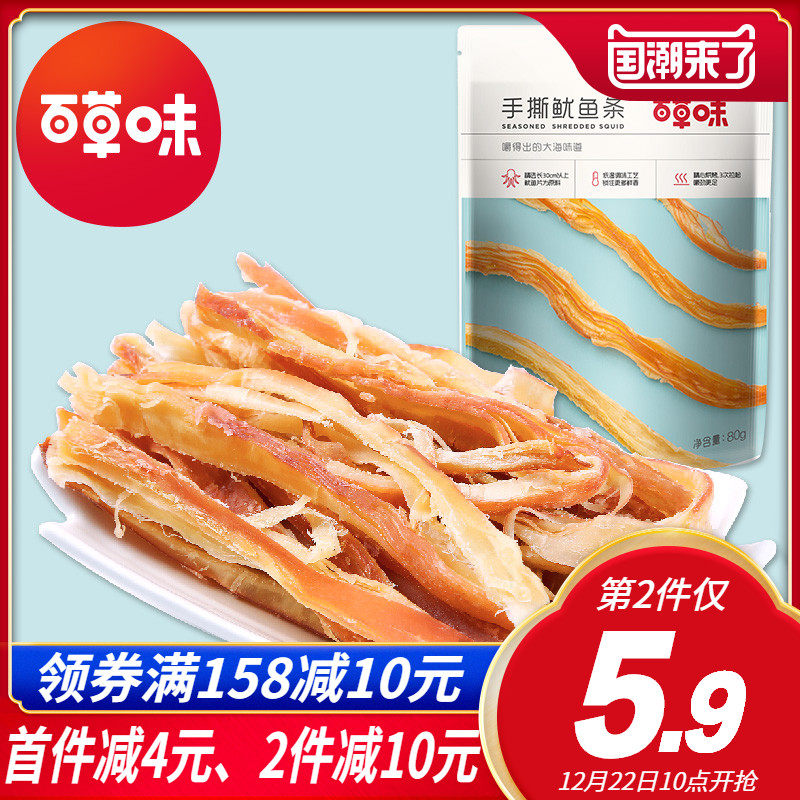 【百草味-手撕鱿鱼条80g】鱿鱼须丝海味零食即食小鱿鱼干特产小吃