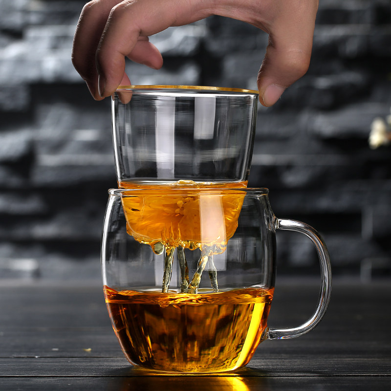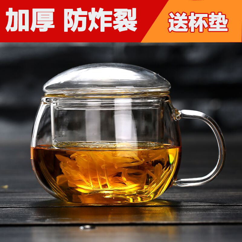 加厚耐热玻璃杯透明带盖过滤花茶杯双层办公创意水杯女可微波茶具