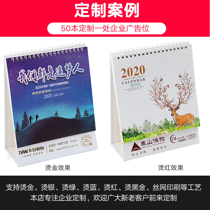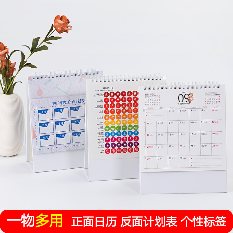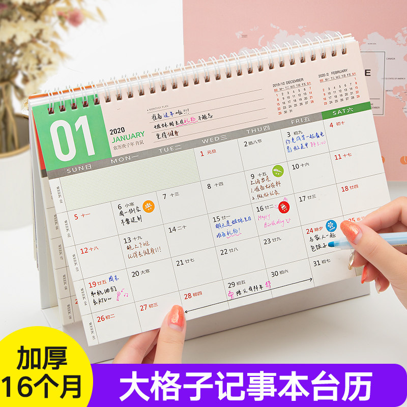 台历2020年日历创意简约小清新ins风可爱定做月历桌面摆件台历式记事本鼠年工作小日历计划本式2019台历定制