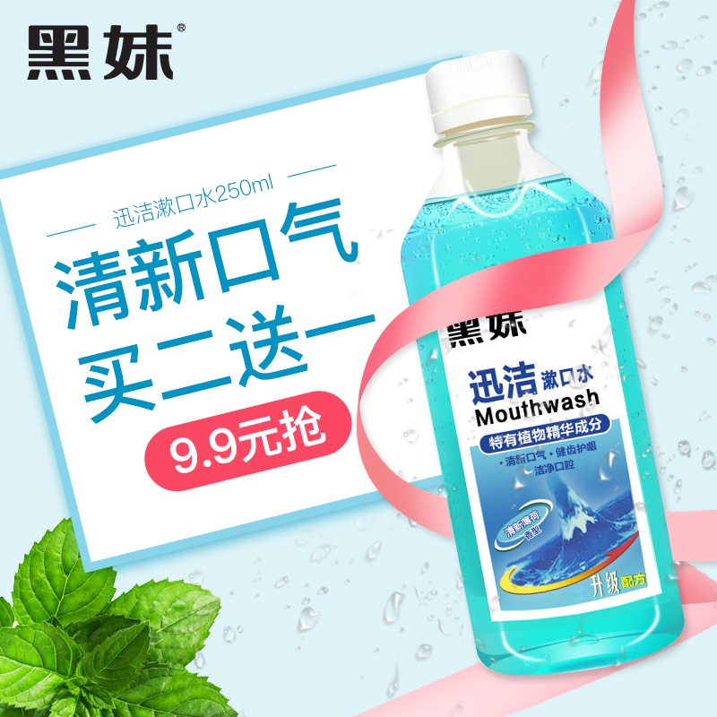 黑妹漱口水便携装饭后清新口气男女士含氟濑口水簌口水单瓶250ml