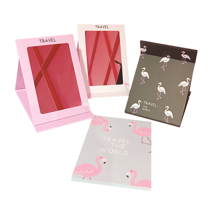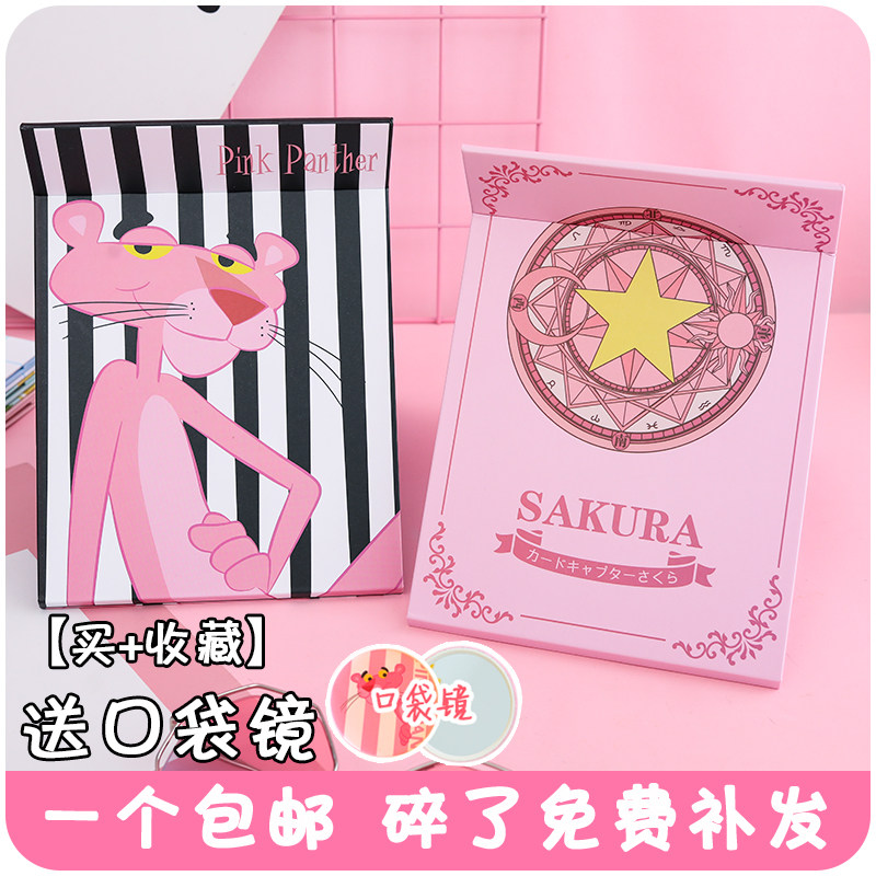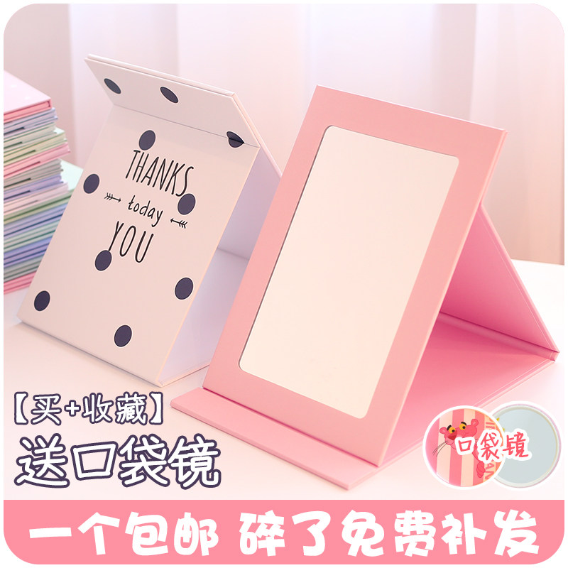 台式公主化妆镜桌面大号折叠小镜子女便携卡通宿舍纸镜随身梳妆镜
