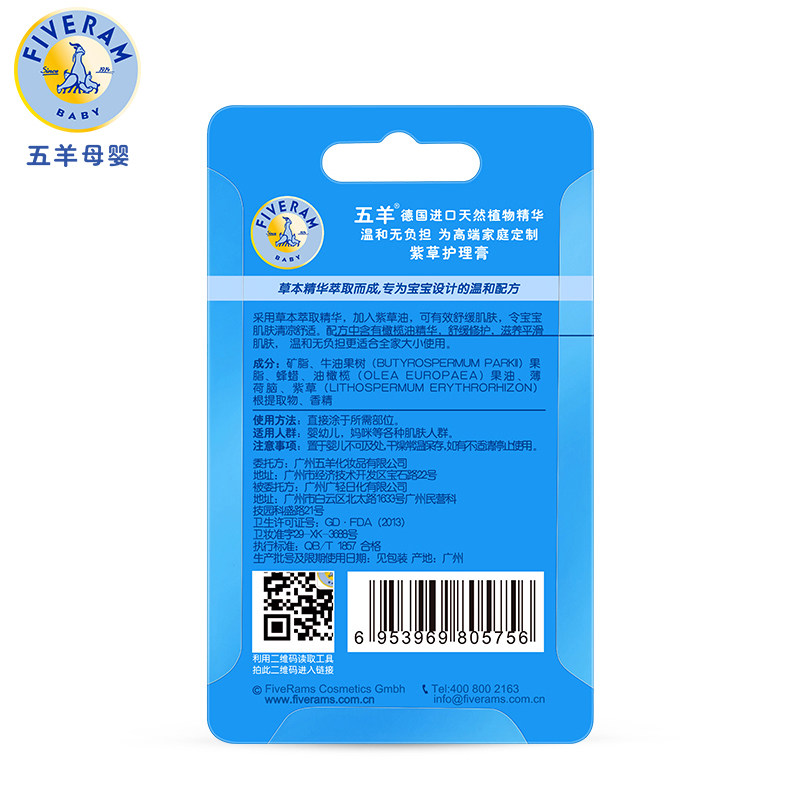 五羊紫草膏婴儿护理膏儿童缓和蚊叮夏季清凉叮咬舒缓宝宝软膏10g
