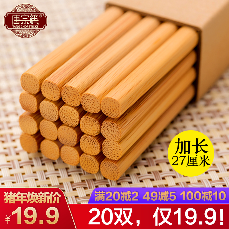 唐宗筷火锅筷子20双快子加长家用酒店竹筷子餐具套装无漆无蜡长筷