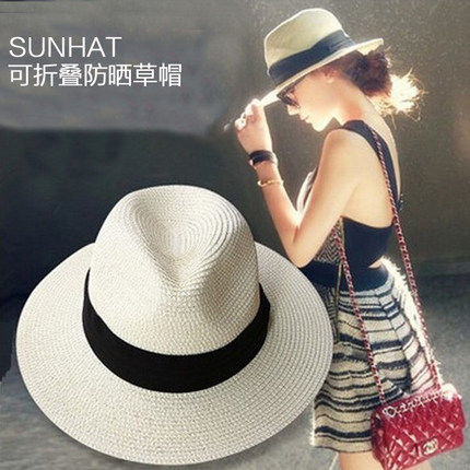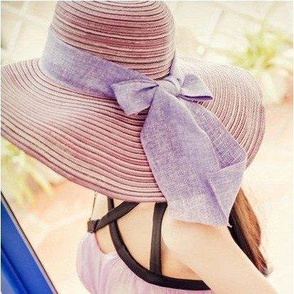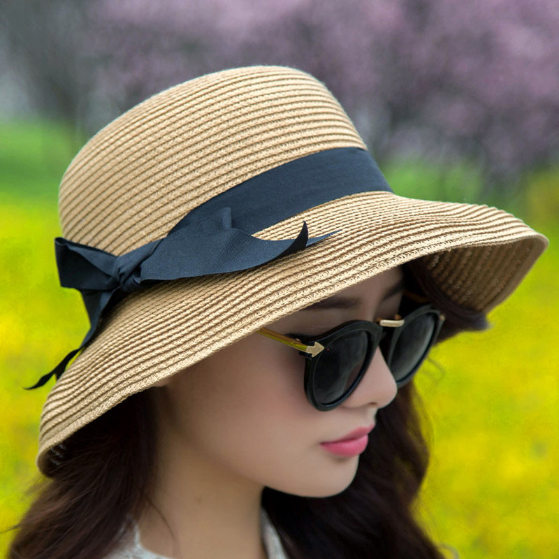帽子女士夏天韩版潮草帽防晒可折叠夏季蝴蝶结沙滩帽太阳帽遮阳帽