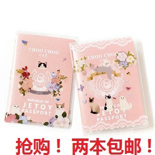 简约淑女可爱卡通猫咪透明护照夹|证件夹套|护照包防水护照保护套
