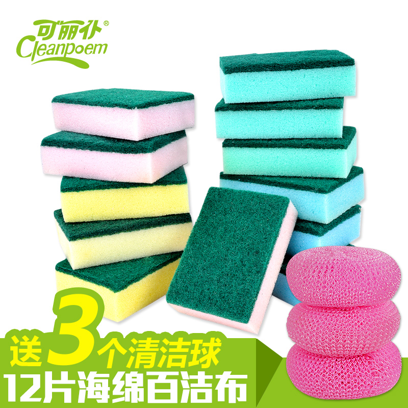 可丽仆洗碗布洗碗海绵百洁布刷碗布清洁抹布去污菜瓜布12片装