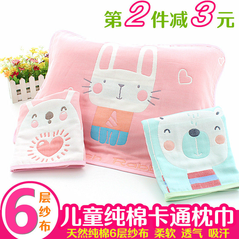 儿童枕巾纯棉加厚六层纱布四季全棉婴儿枕巾幼儿园宝宝卡通大枕巾