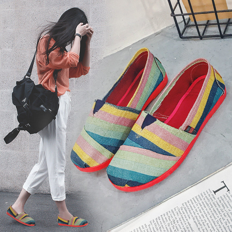 春季老北京布鞋女鞋低帮帆布鞋女韩版懒人一脚蹬平底休闲鞋玛丽鞋