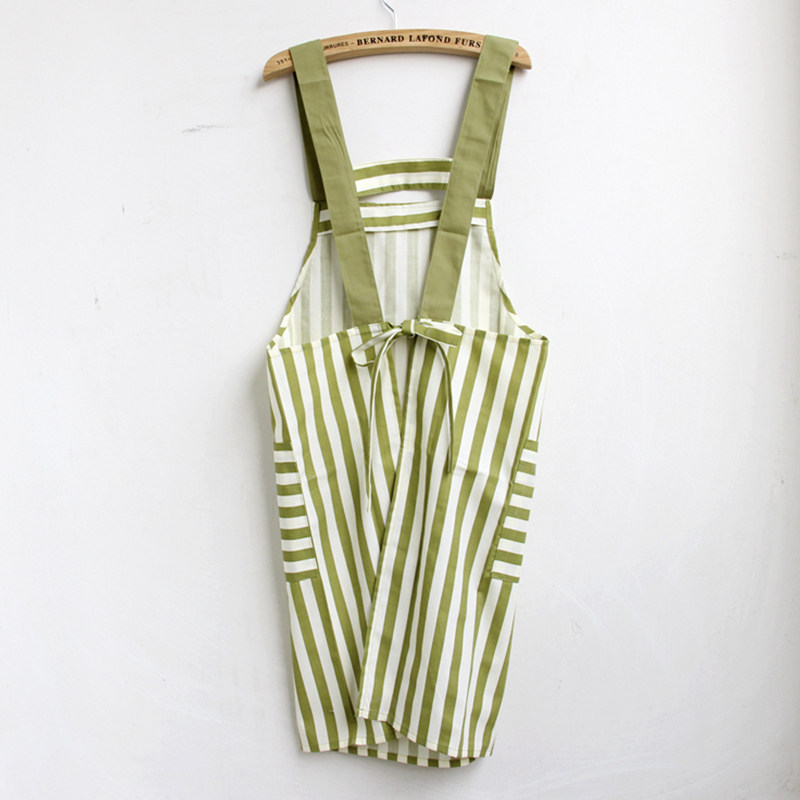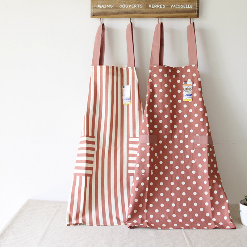 棉麻布艺简约成人厨房清洁围裙可爱日系条纹波点文艺小清新店夏季