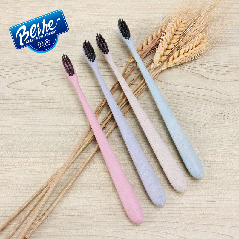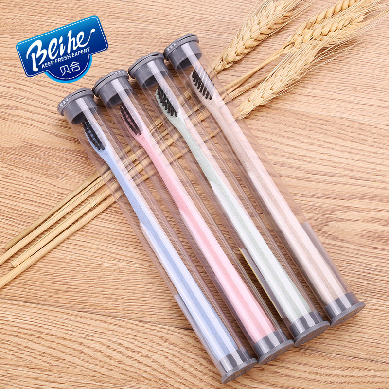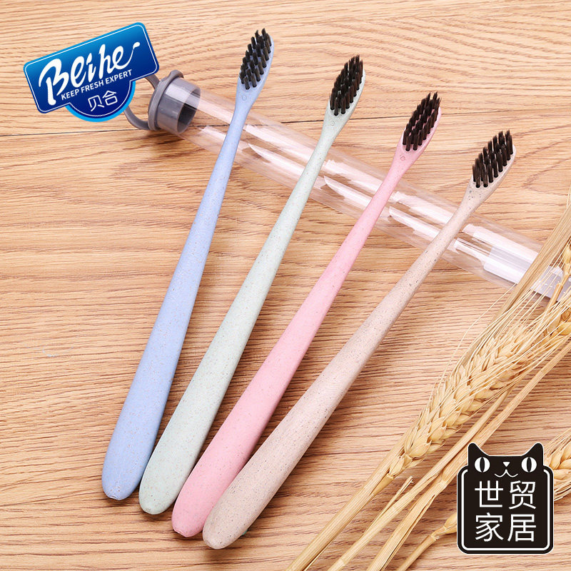小麦日系成人细软毛洗漱家用清洁小头牙刷 旅行防滑竹炭2支独立装
