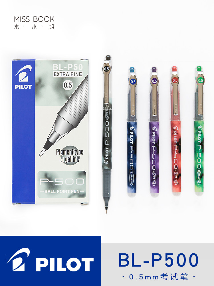 百乐P500中性笔 日本进口文具走珠笔0.5mm初高中学生针管考试水笔