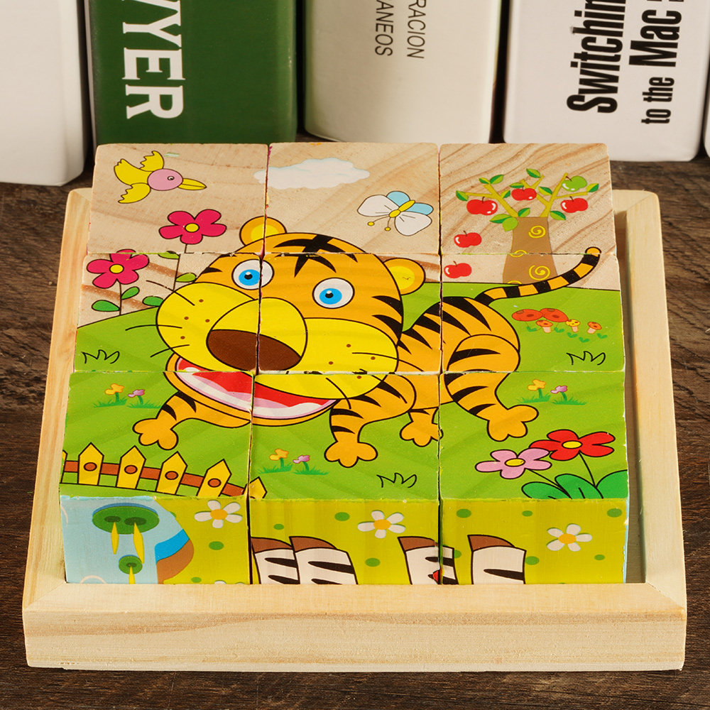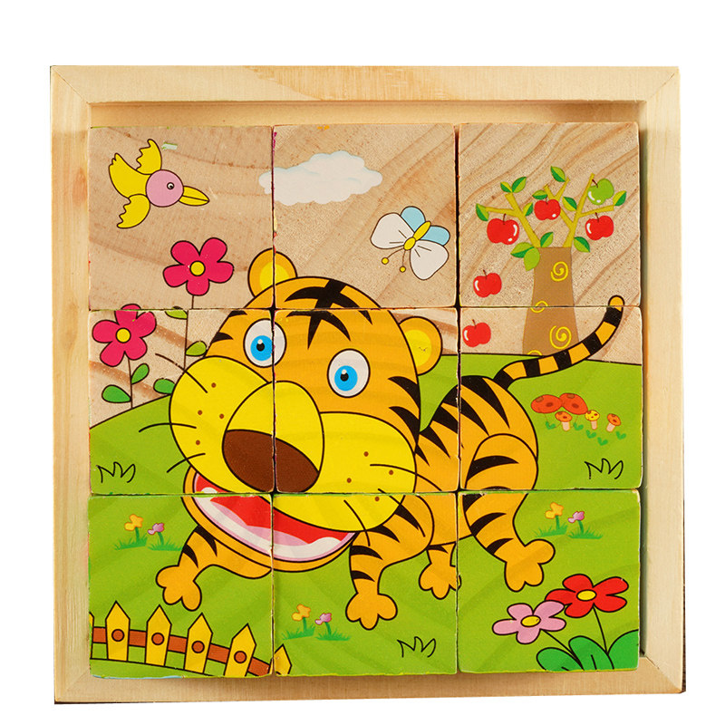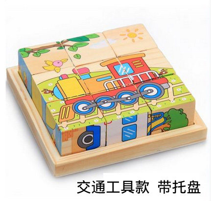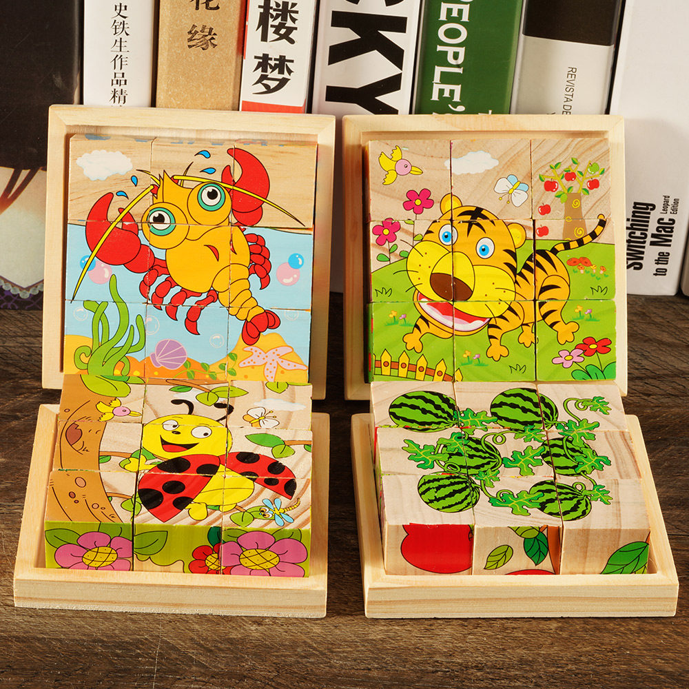9粒儿童六面画拼图木质3D立体积木制早教益智幼儿宝宝玩具