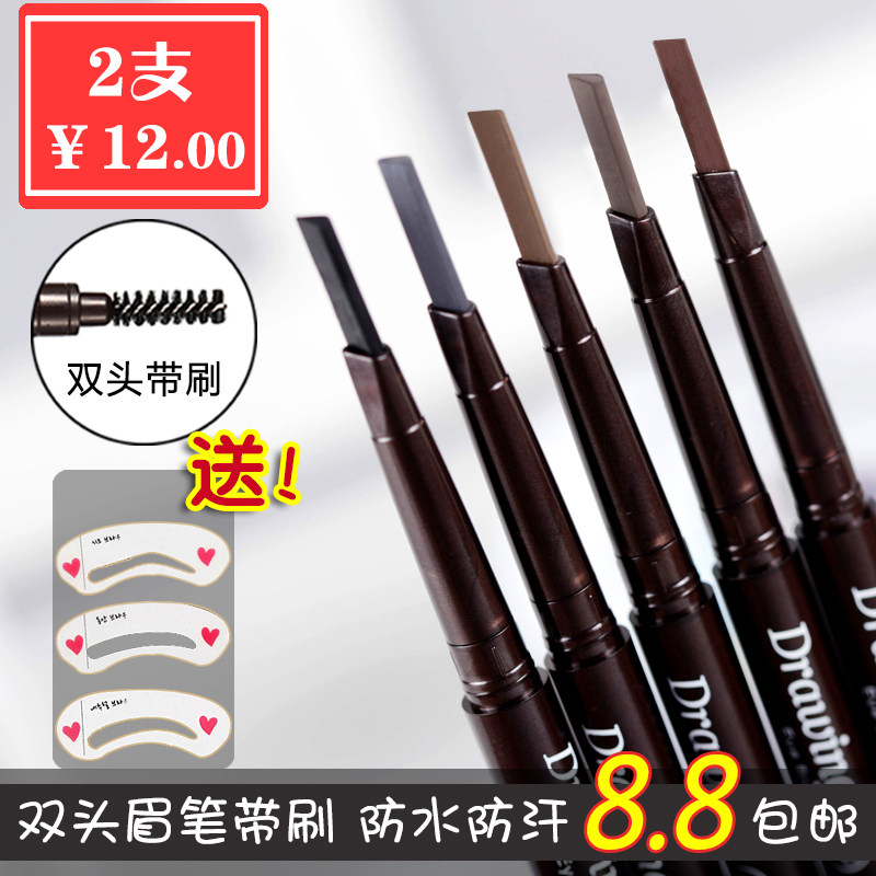正品包邮自动旋转双头眉笔防水防汗不晕染画眉笔一字眉粉 带眉刷