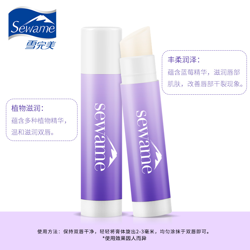 正品雪完美蓝莓润唇膏3.5g保湿滋润 天然润唇防干润唇膏 无色滋润