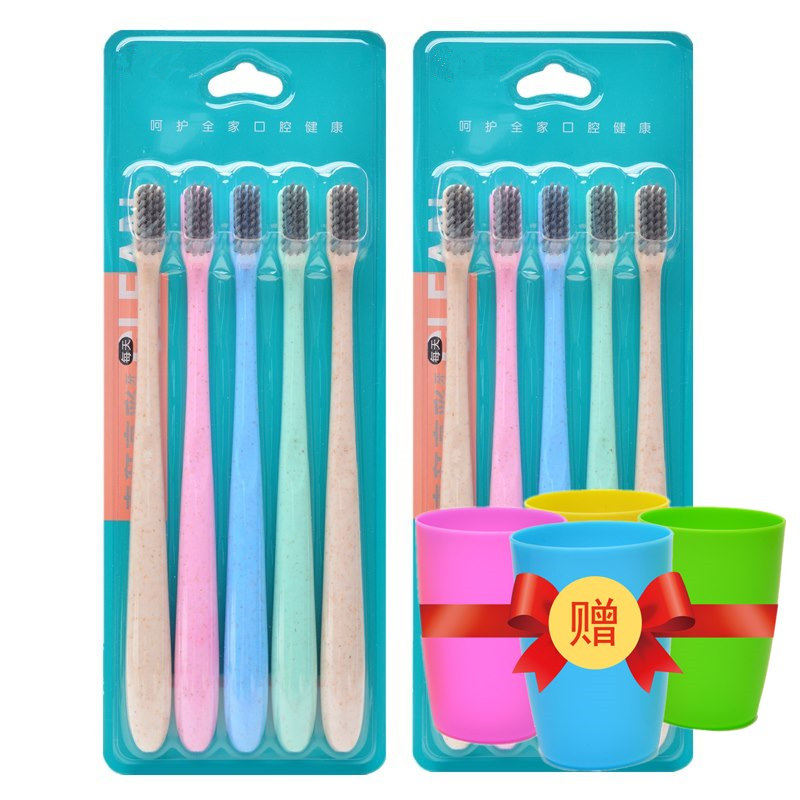 20支小麦秸秆子成人竹炭细软毛牙刷 家庭家用套装批发价多地包邮