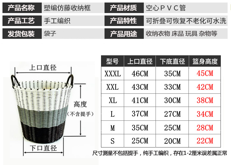 脏衣篮编织塑料洗衣筐卫生间特大号衣篓换洗脏衣服收纳筐篮玩具筐
