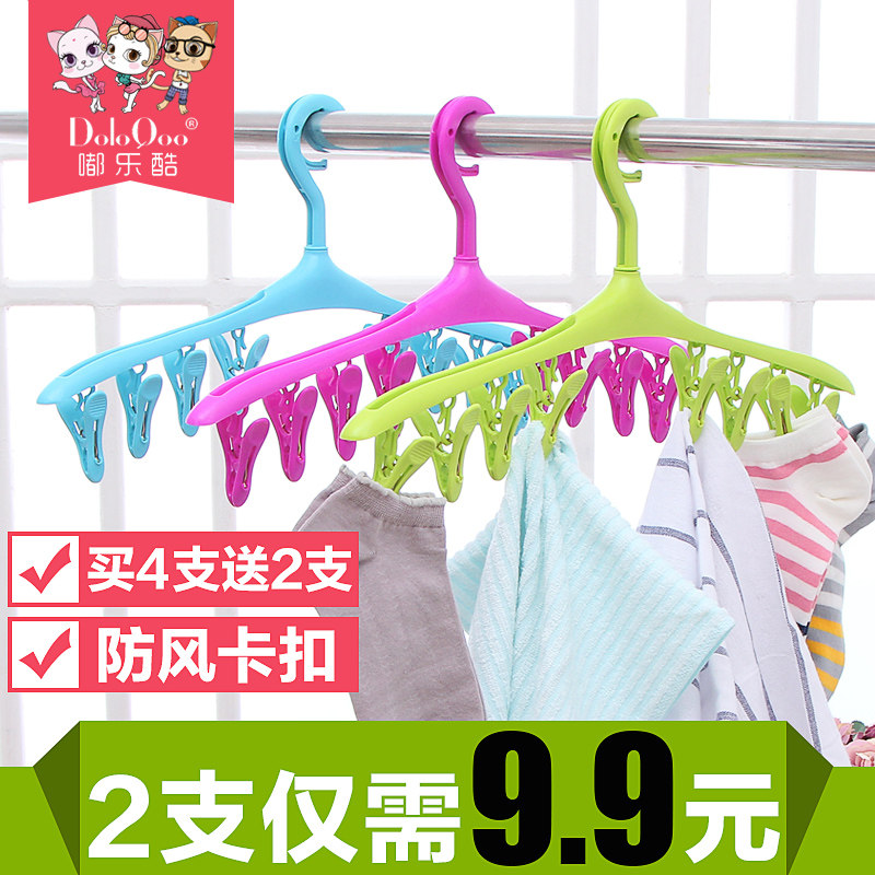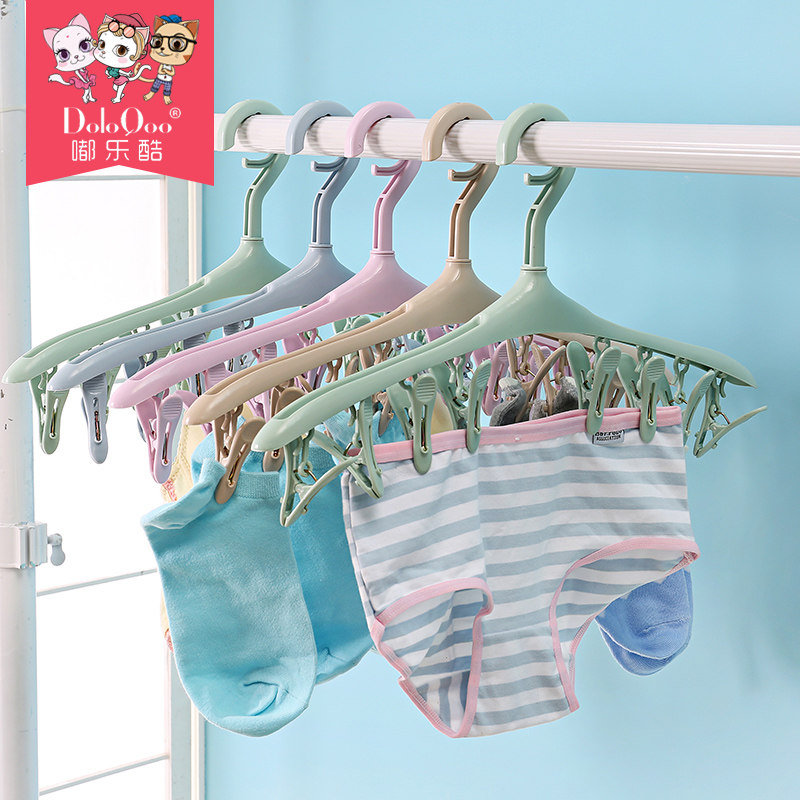 防风衣架子家用多功能带夹晾晒袜子内衣塑料加粗婴儿童宝宝晒衣架
