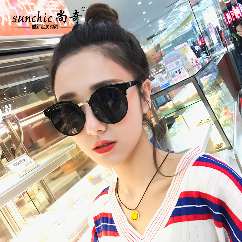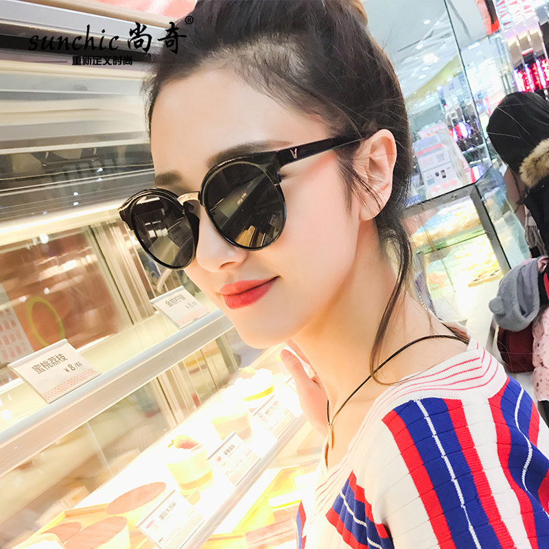 2019新款太阳镜 女时尚复古墨镜女潮人大框圆脸韩版炫彩反光眼镜