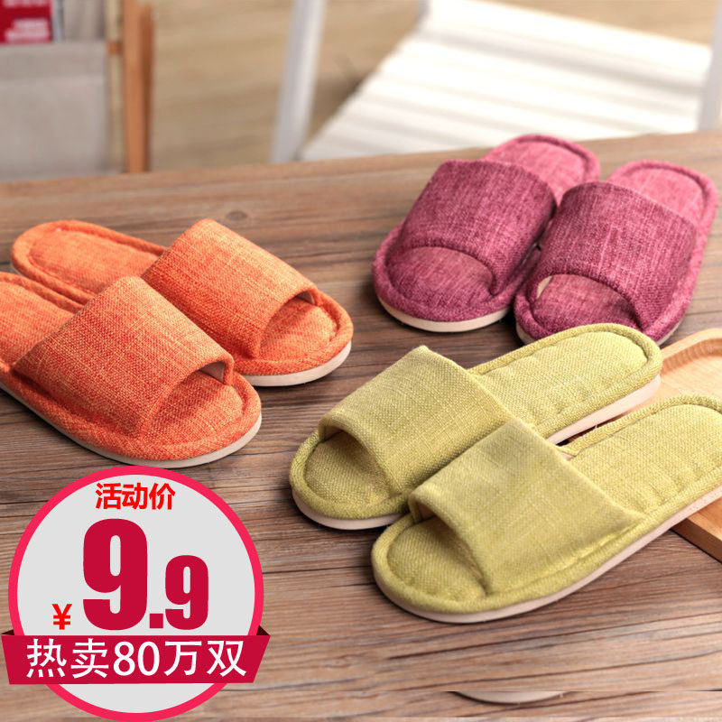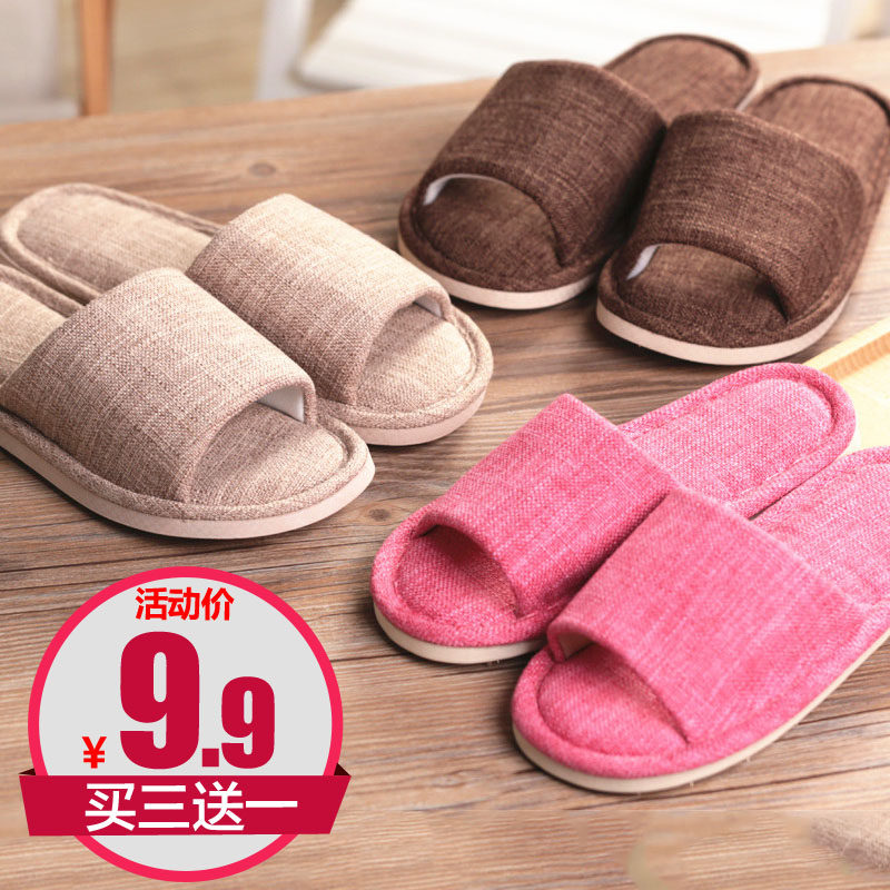 日式亚麻拖鞋女夏季情侣春秋厚底室内地板防滑家居家用棉布拖鞋男