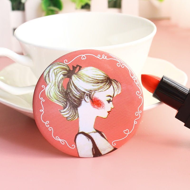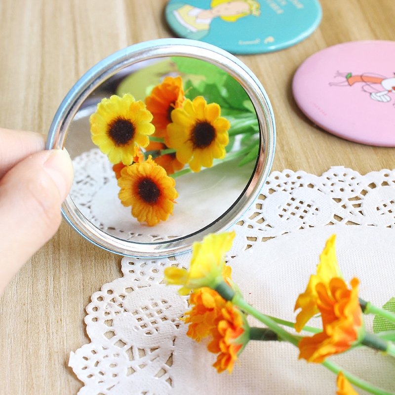 韩国圆形随身化妆镜迷你便携卡通小镜子可爱随身镜台式圆镜