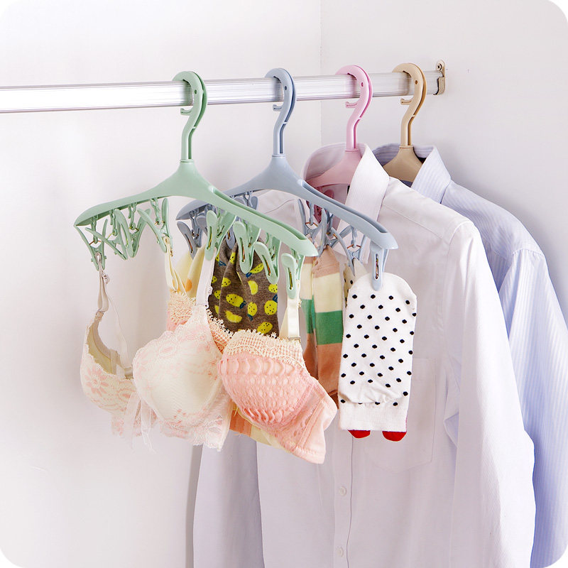 优思居 家用8夹卡扣防风衣架 多功能晾衣架内衣衣服夹袜子晾晒架