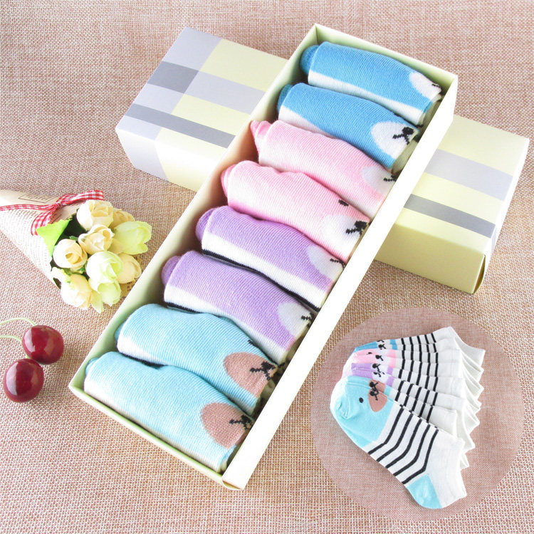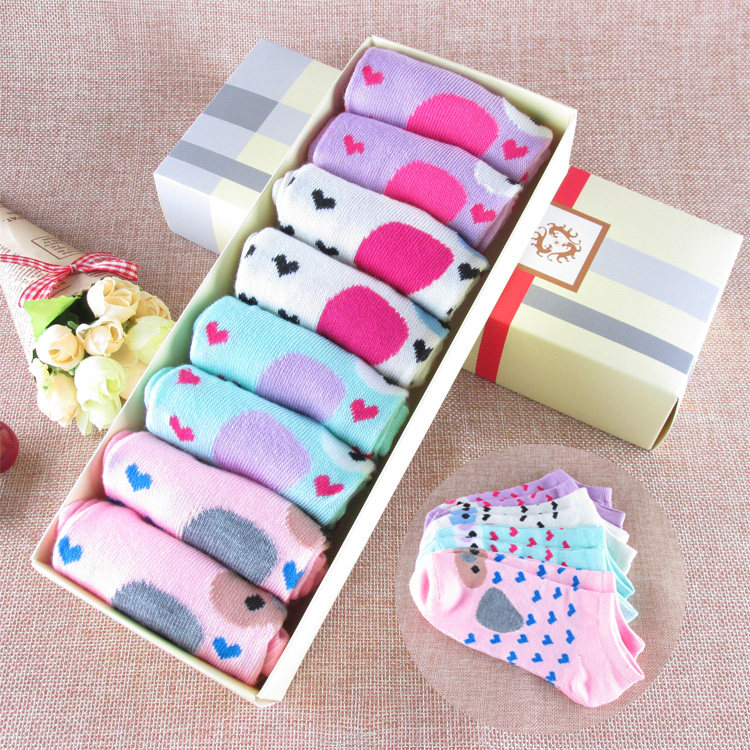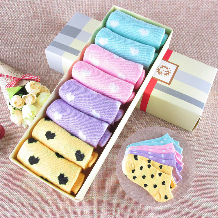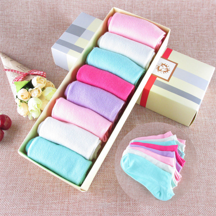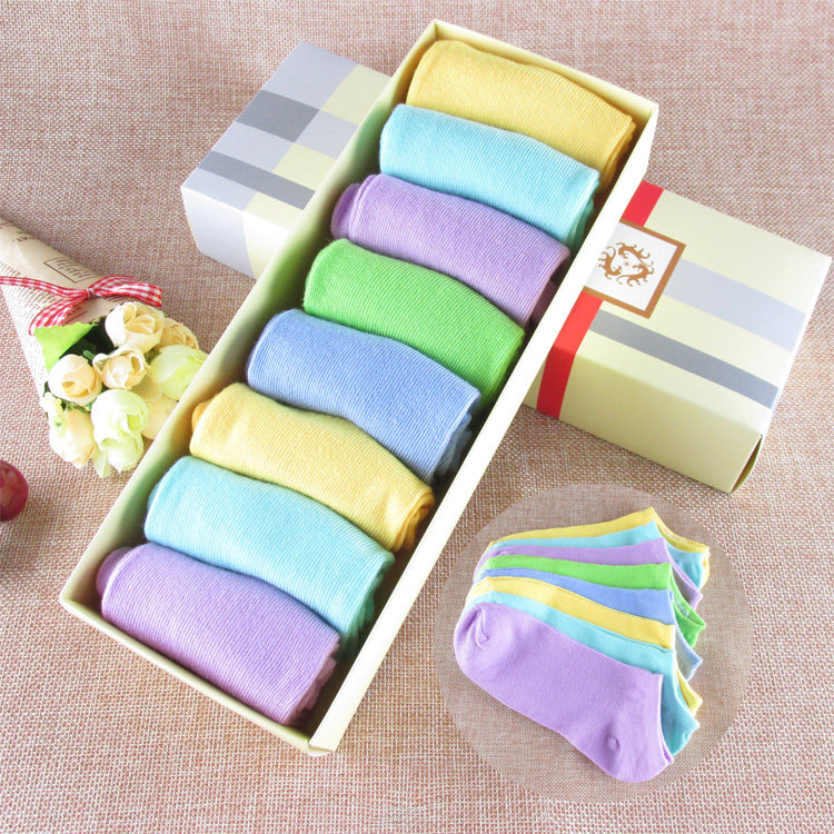袜子女春秋船袜短袜浅口半隐形糖果色彩色袜子礼学生袜子8双