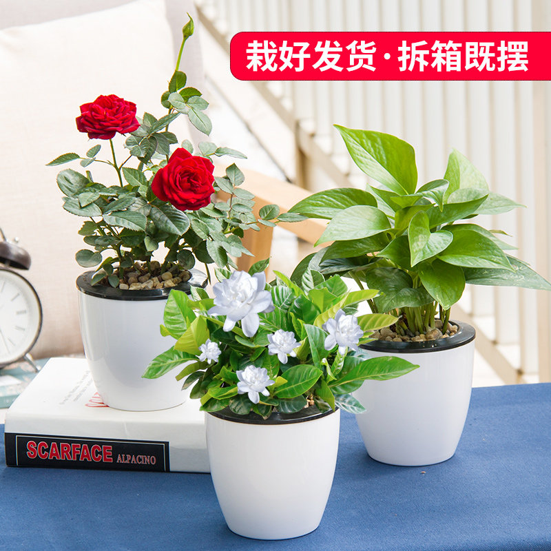 栀子花发财树富贵竹室内盆栽园艺月季花卉绿植绿萝吊兰植物红豆杉