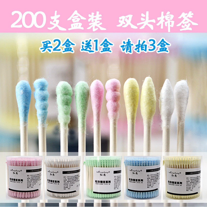 200支双头化妆棉签 美容卸妆棉棒无菌化妆工具盒装包邮 买2送1