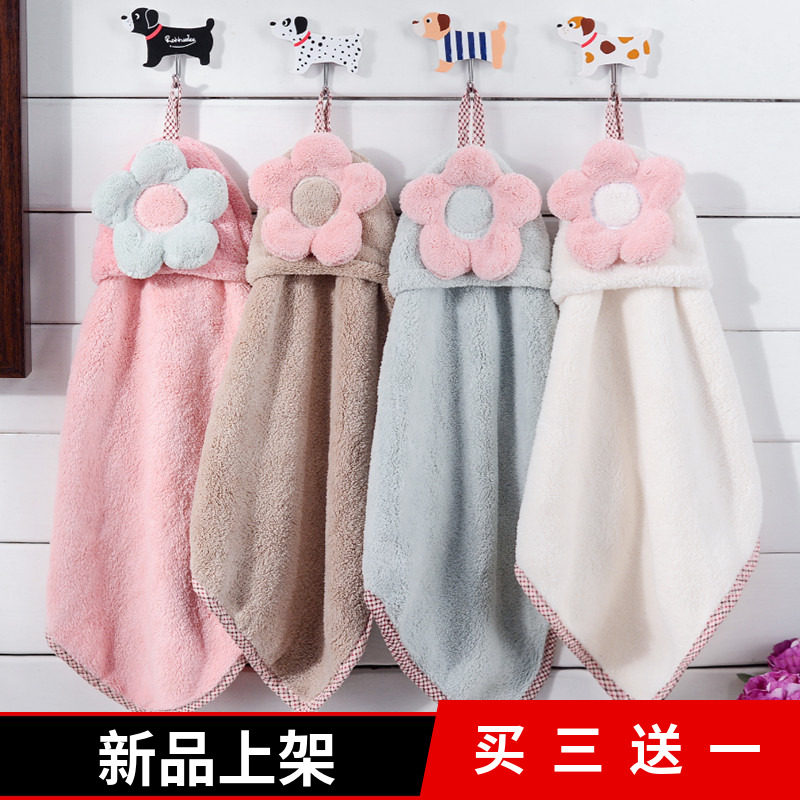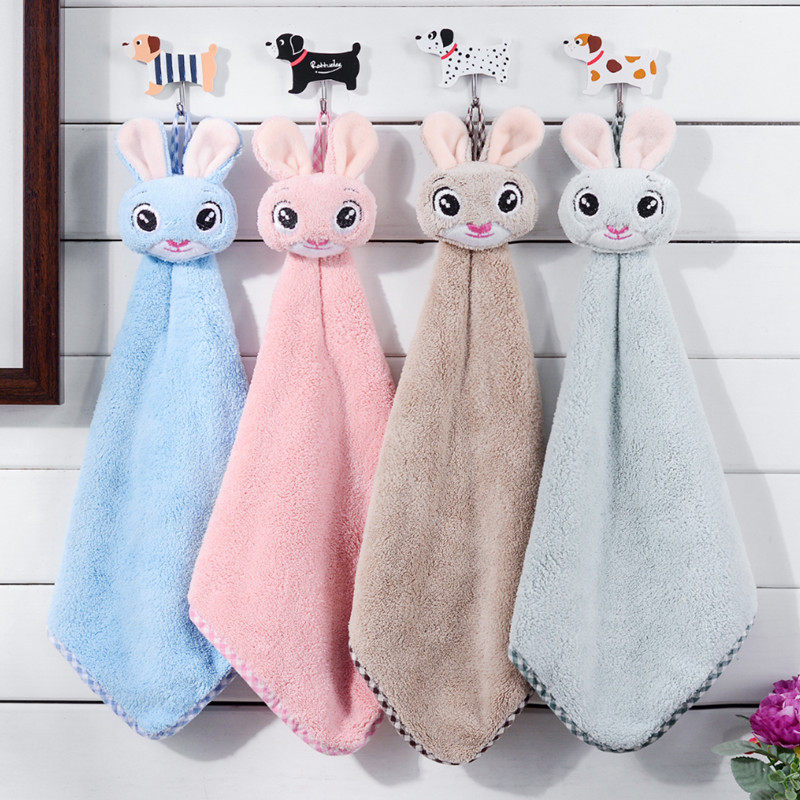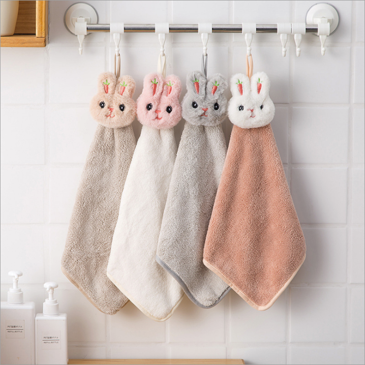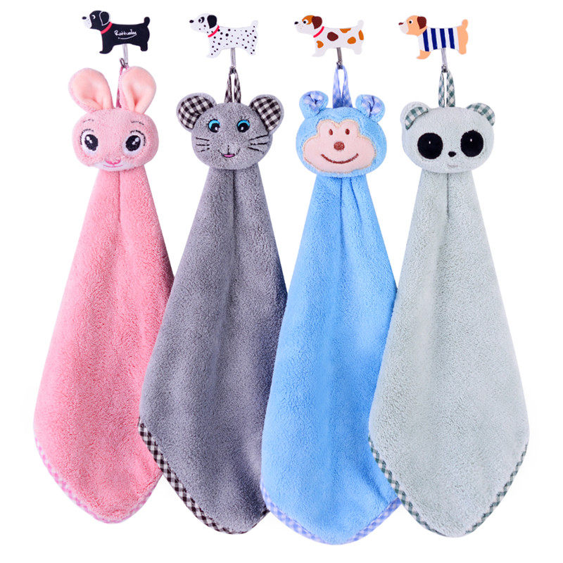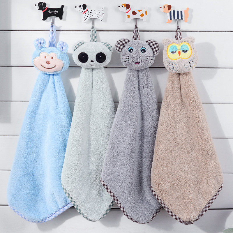 挂式擦手巾加厚吸水珊瑚绒可爱儿童毛巾成人厨房抹布卫生间搽手巾