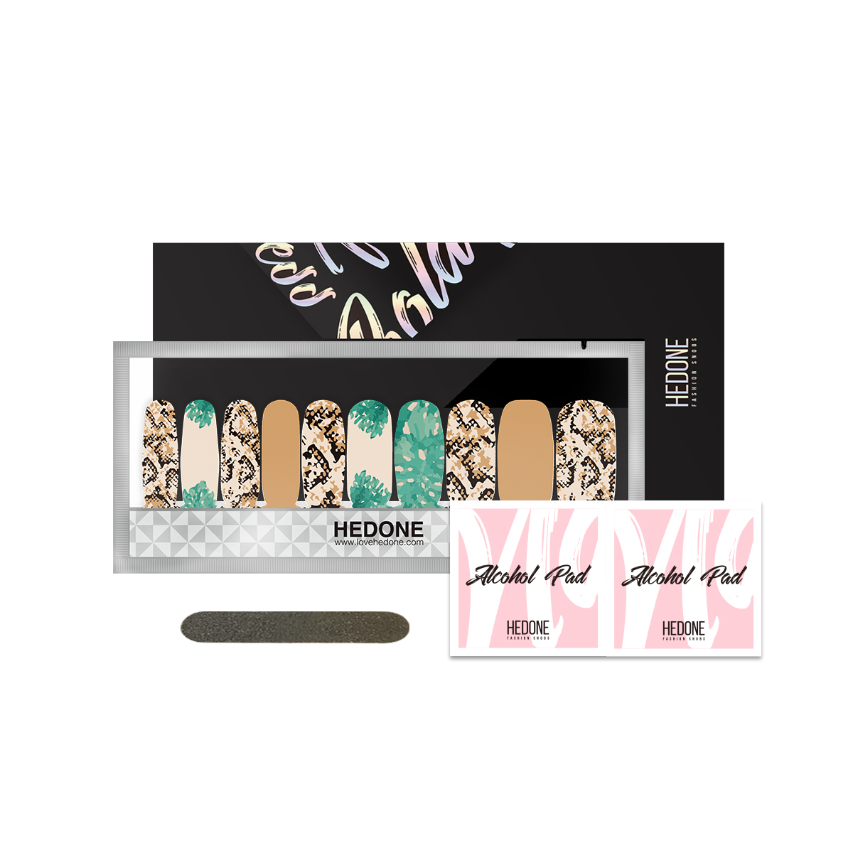 HEDONE 森林蛇纹 经典百搭大地色系|绿色指甲油贴 持久防水美甲贴
