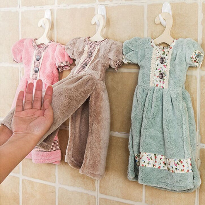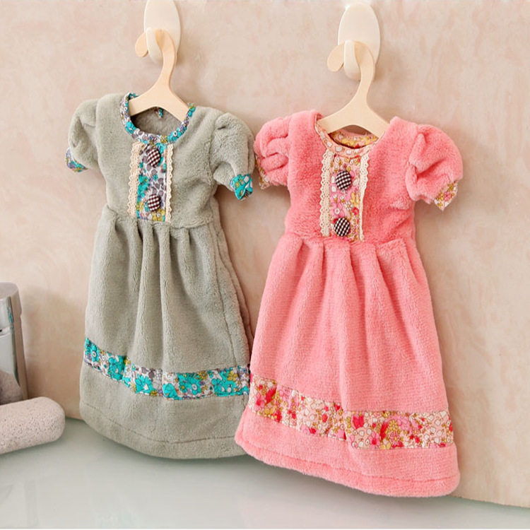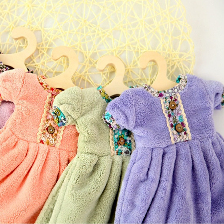 包邮 珊瑚绒连衣裙小衣服公主裙子擦手巾浴室强吸水干手巾送衣架