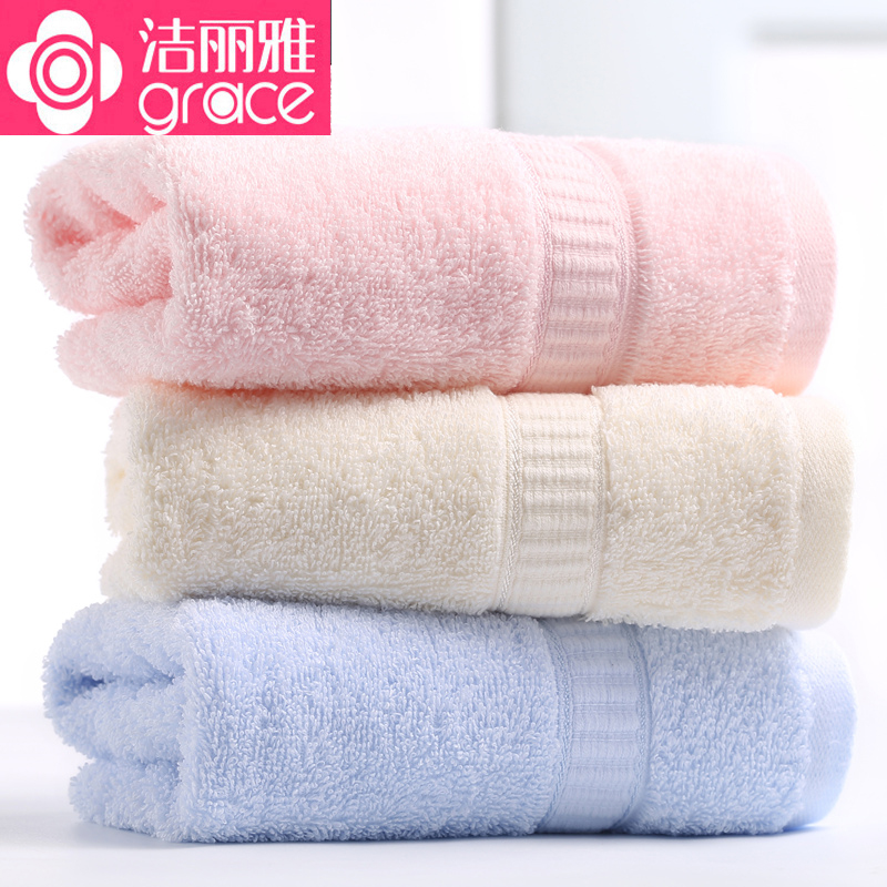 洁丽雅毛巾 素色纯棉绸缎面巾 柔软亲肤女士成人情侣洗脸巾一等品