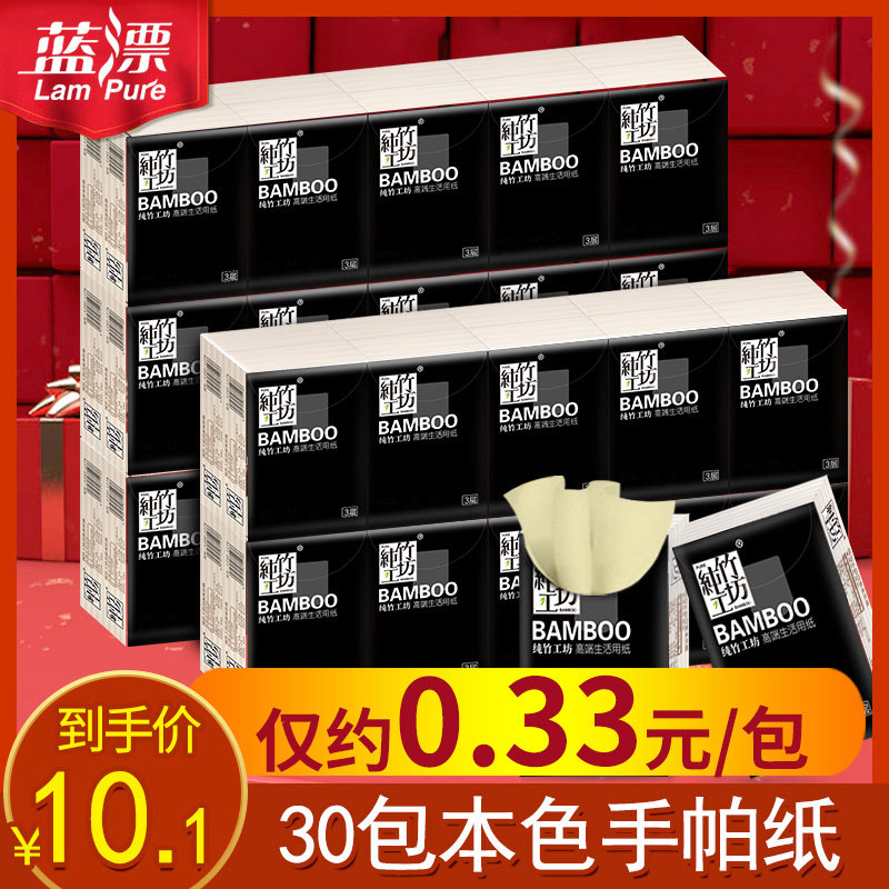 本色手帕纸不漂白纸巾便携式面巾纸小包纸巾抽纸3条30包方巾纸