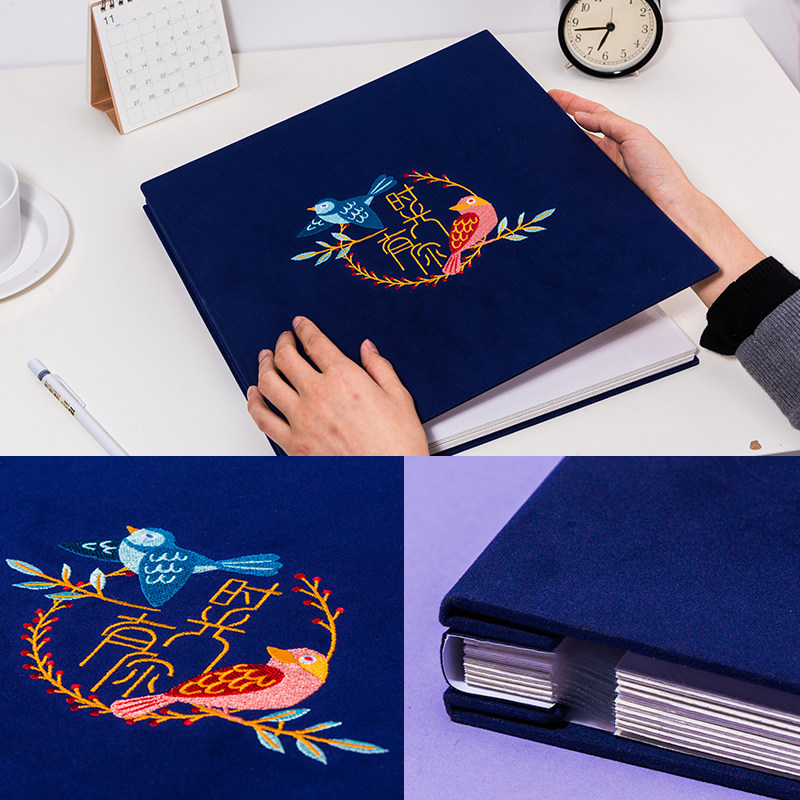 刺绣DIY手工纪念相册照片定制礼物制作粘贴式浪漫情侣创意影集本