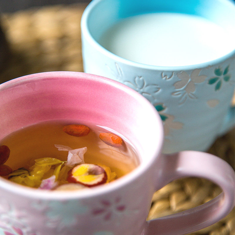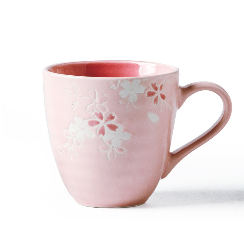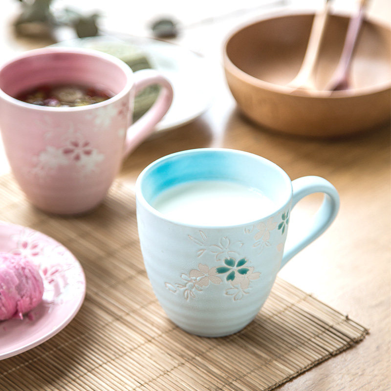 亿嘉陶瓷杯子日式水杯家用马克杯可爱情侣对杯牛奶杯早餐杯樱花
