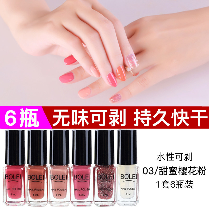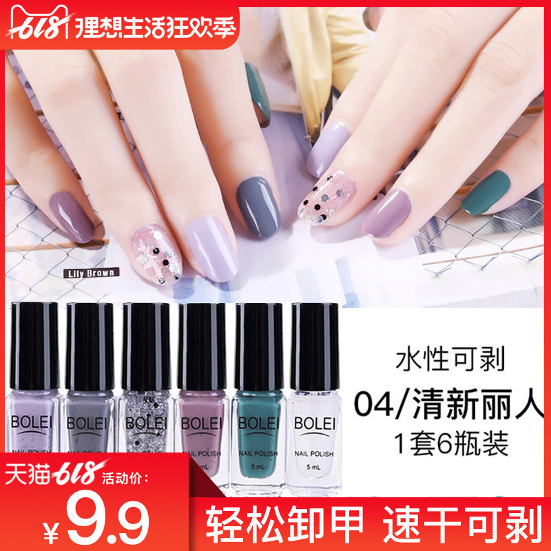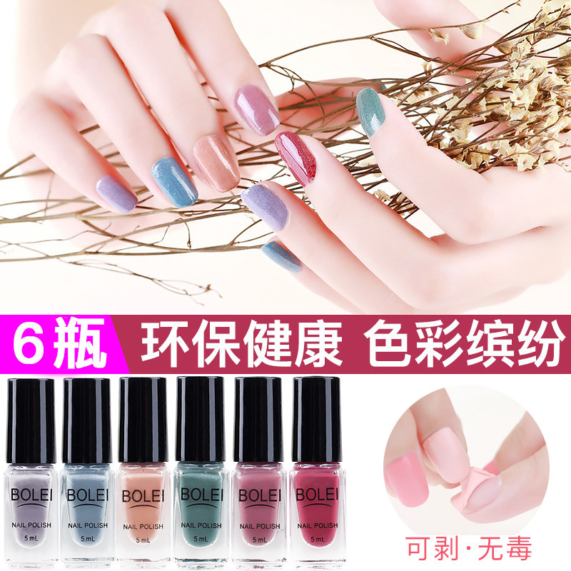 6瓶 韩国指甲油套装美甲组合12色可剥裸色不易掉美甲脚指甲油胶