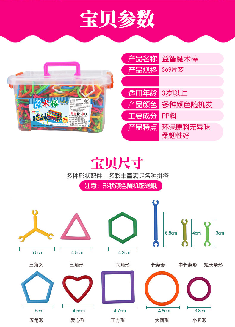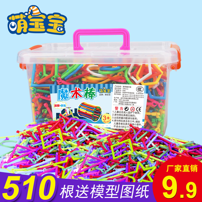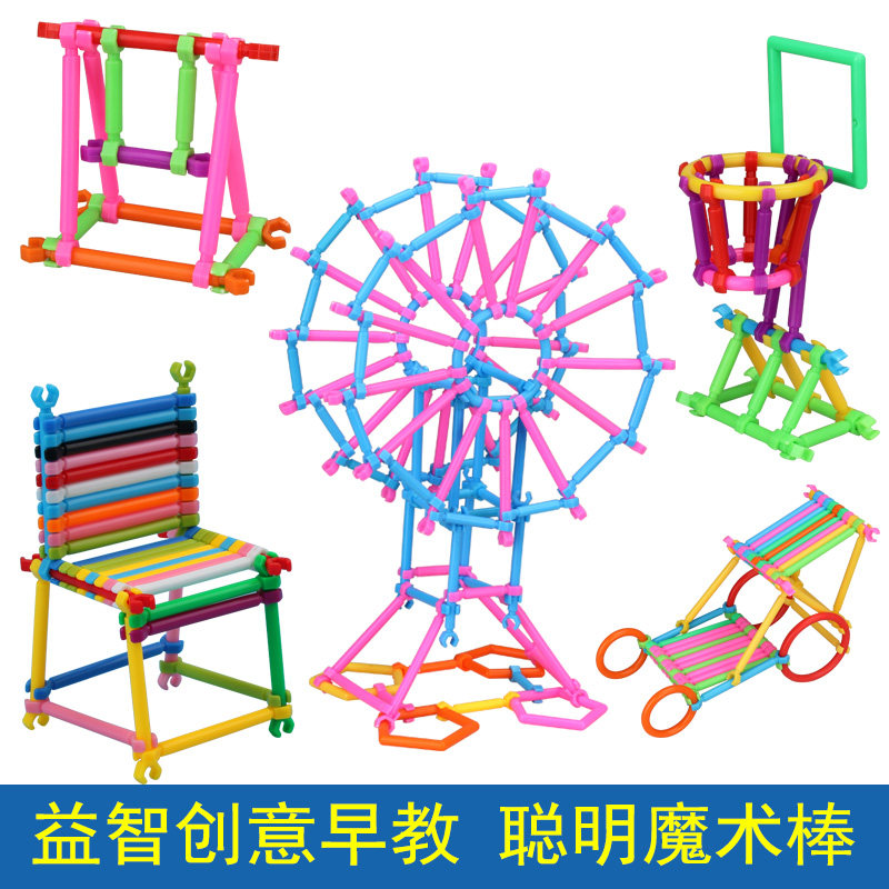 聪明魔术棒塑料积木1-3-4-6-7周岁男孩益智力儿童雪花片拼装玩具