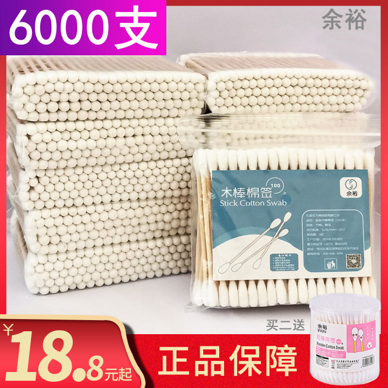 6000支棉签包邮木棒棉棒球双头灭菌掏耳朵用化妆卸妆棉花签棒量售