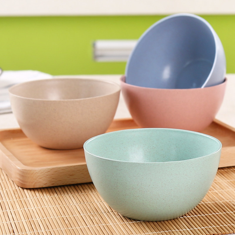 环保小麦秆圆形小碗米饭碗家用日式餐具儿童吃饭碗喝汤碗沙拉碗