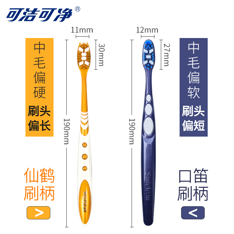 可洁可净牙刷 成人男士大头中毛硬毛去牙渍烟渍美白家用6支家庭装