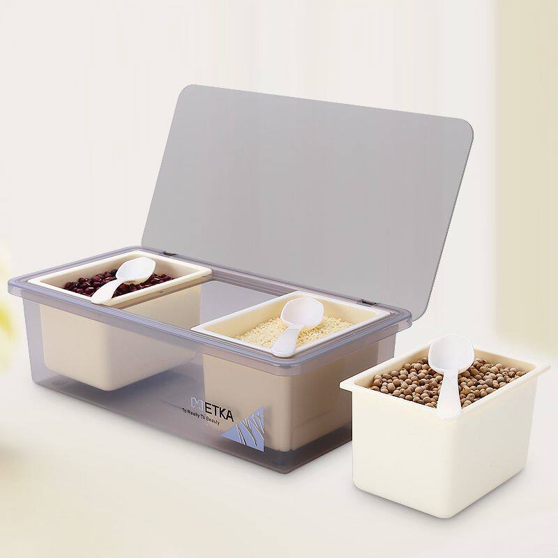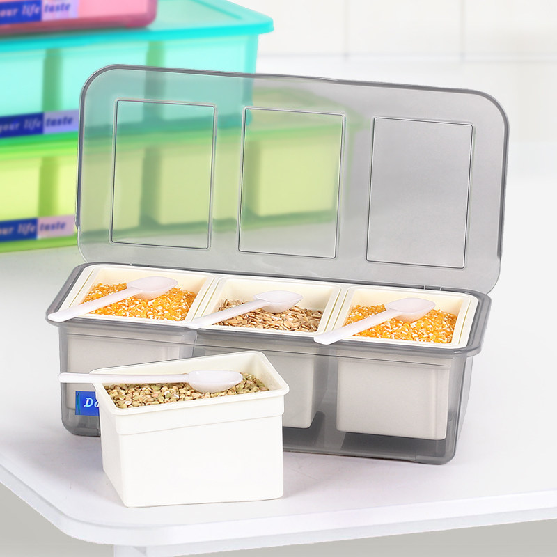 包邮创意厨房调料盒调味罐翻盖调味瓶塑料套装味精盐盒四格式带勺