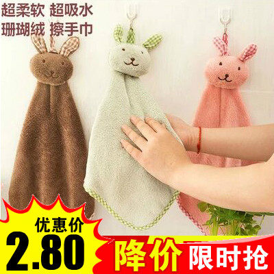 卡通擦手巾可挂式珊瑚绒擦手巾厨房吸水毛巾不沾油洗碗布擦碗布